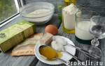 Теперь приготовим соус для листов лаваша. Без него домашняя лазанья из лаваша может получиться слишком сухой. Вместо традиционного соуса бешамель можно использовать более простой соус на основе кефира. Для этого смешиваем кефир, муку и растопленное сливочное масло.